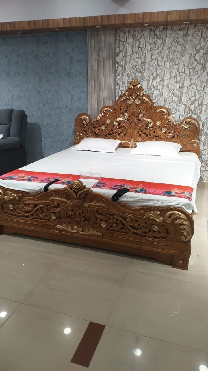 Total Hand work with Batali Design On Solid CP Segun Wood. Hydrolic Box System Available.