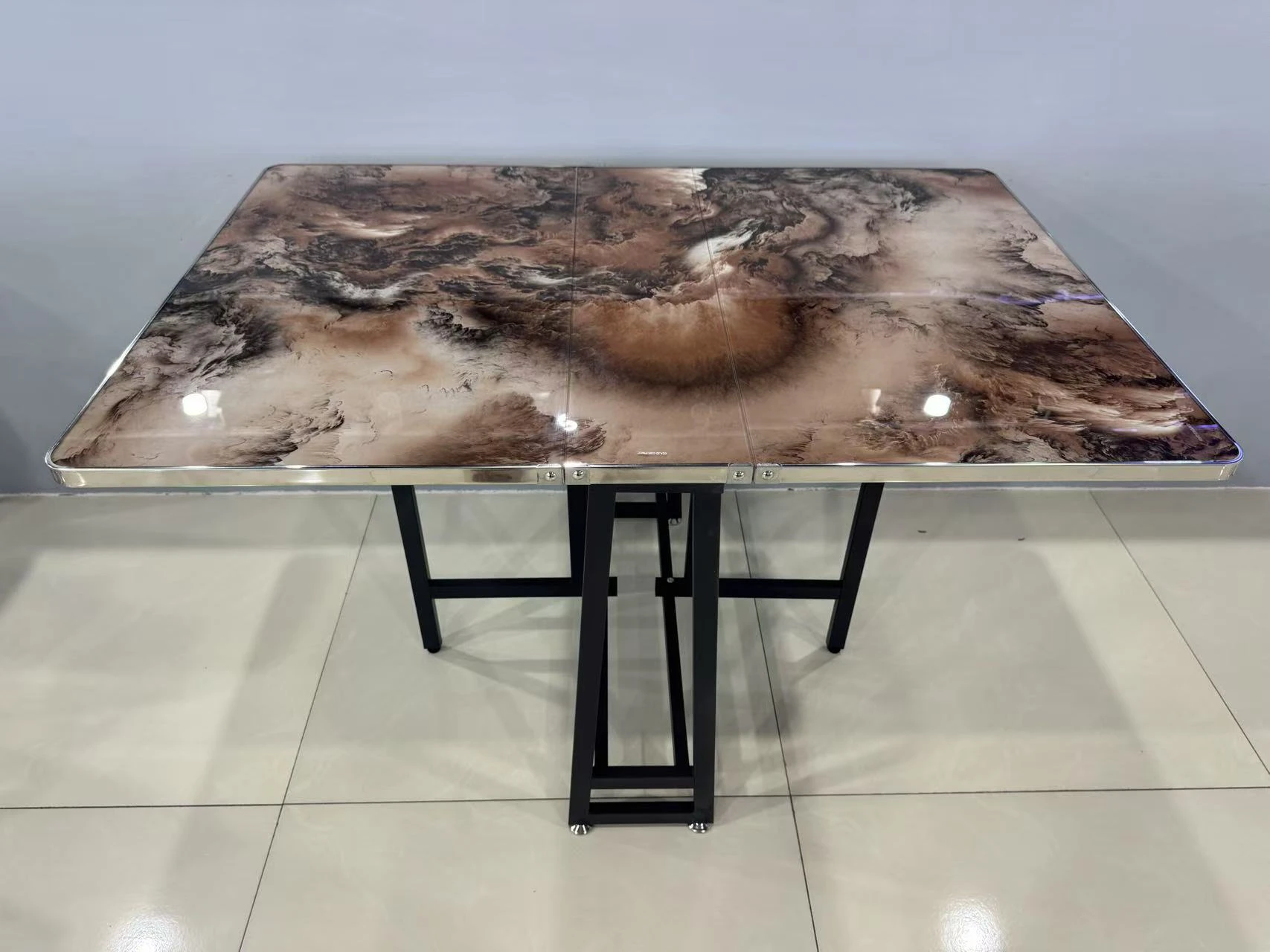 Its foldable structure allows the table to be easily collapsed and stored when not in use, making it ideal for apartments, kitchens, cafés, and multipurpose rooms. Durable, stylish, and easy to maintain, this table is a smart solution for space-conscious interiors.