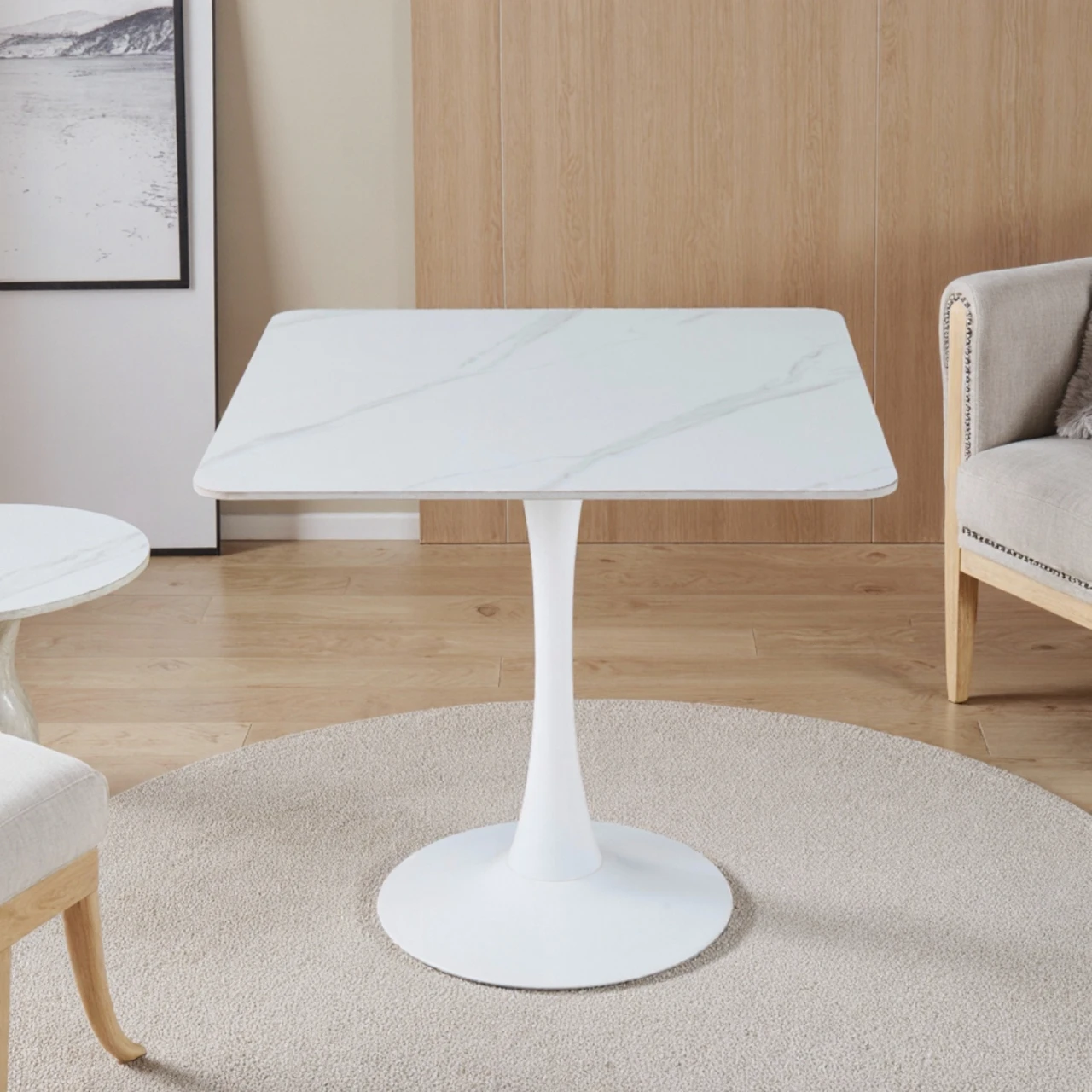 Add elegance to your space with this square marble-finish coffee table, featuring a sleek white pedestal base for a clean and modern look. Ideal for living rooms, cafés, offices, and lounges, it combines premium style with everyday durability.