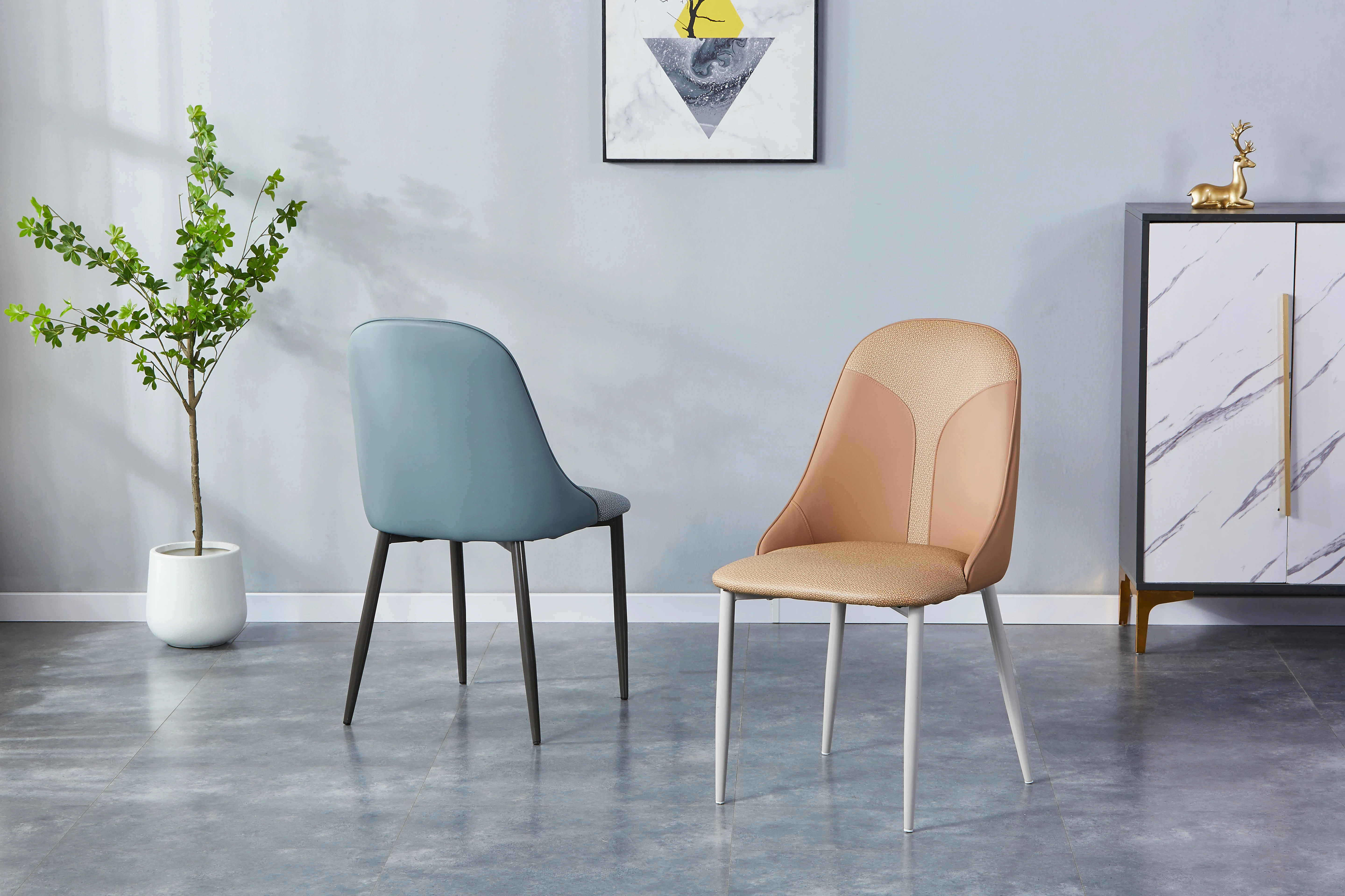 Add a refined modern touch to your dining or living space with this two-tone upholstered dining chair. Designed with a softly cushioned seat and a curved ergonomic backrest, the chair combines comfort with contemporary aesthetics.