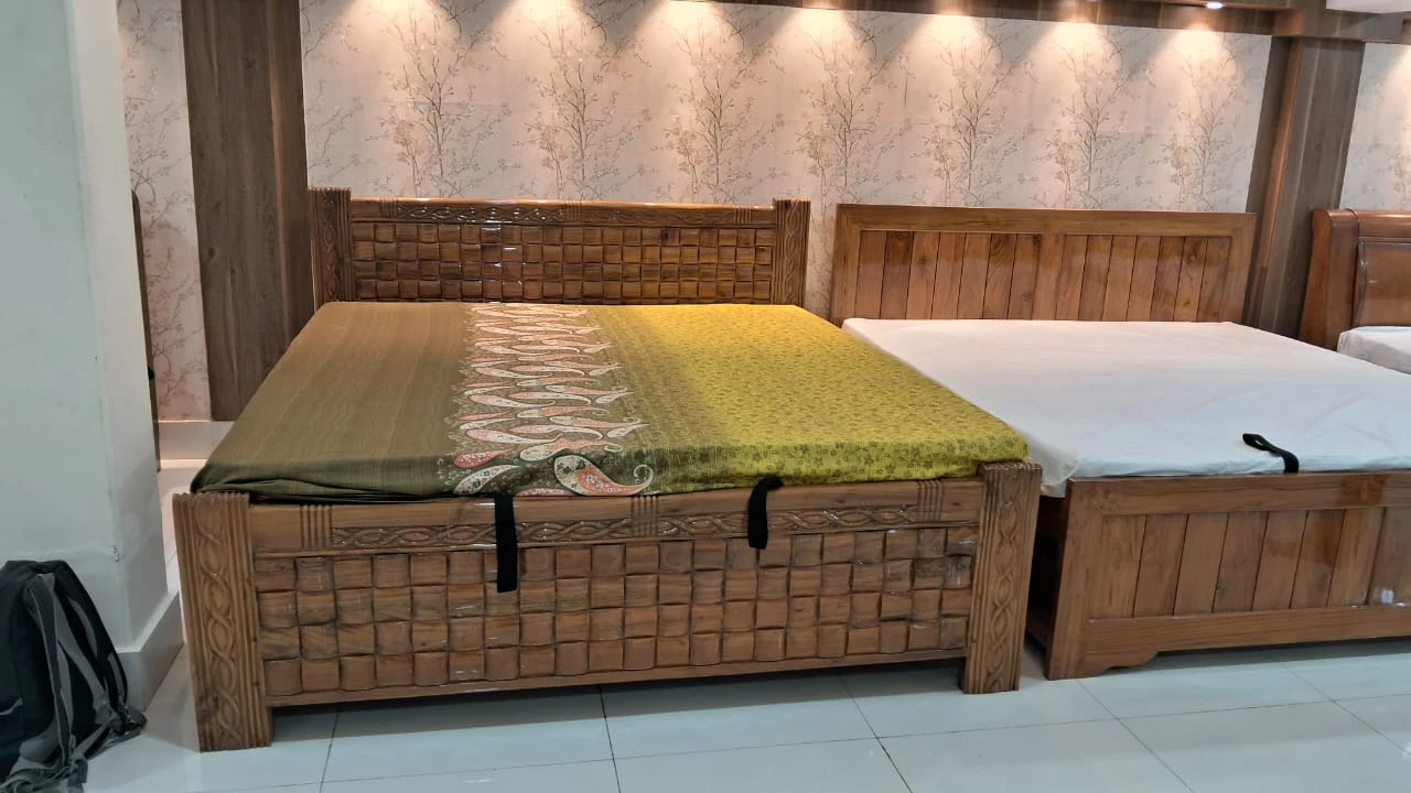 Total Hand work with Batali Design On Solid CP Segun Wood. Hydrolic Box System available.