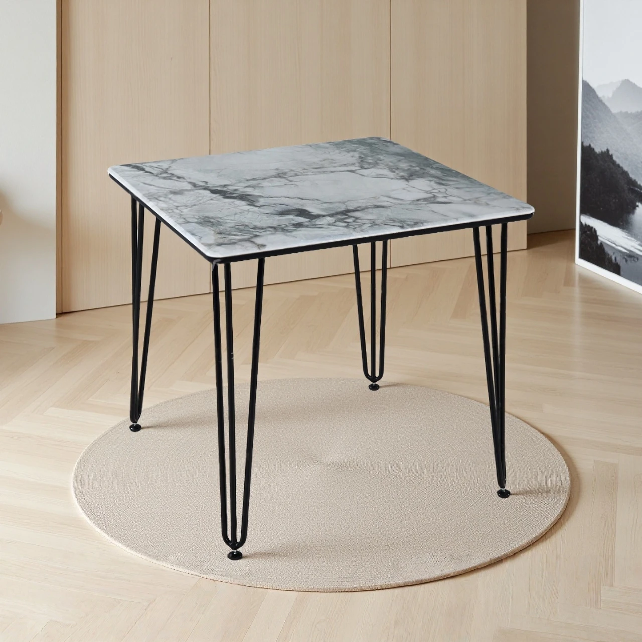 Upgrade your space with this modern square marble-finish coffee table, designed with sleek metal hairpin legs for stability and style. Ideal for living rooms, cafés, offices, and lounges, it blends elegance with everyday durability.