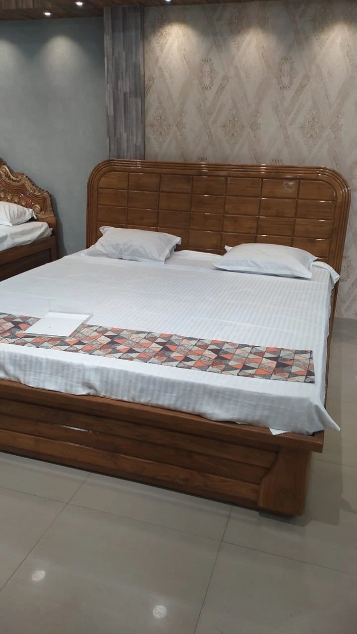 Total Hand work with Batali Design On Solid CP Segun Wood. Hydrolic Box System Available.